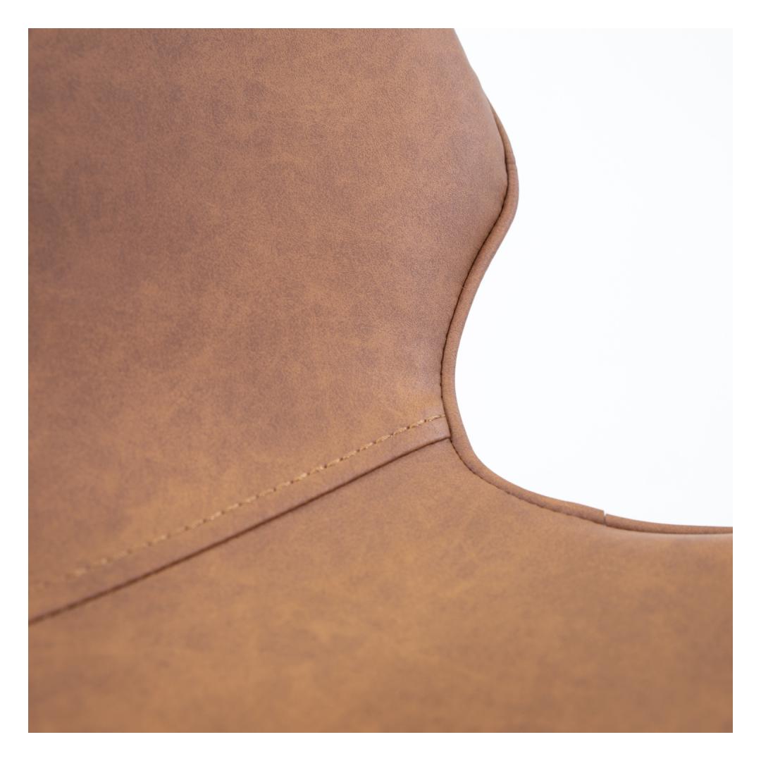 Tool HELENA 46,5x53xH87cm. Tooli mugava vormiga iste on kaetud helepruuni seemisnahka meenutava polüesterkangaga. Jalad on valmistaud metallist ja viimistletud musta pulbervärviga. istme kõrgus 46,5cm, istme laius 46,5cm, istme sügavus 41cm, seljatoe kõrgus 44cm. Kaalupiirang 100kg.