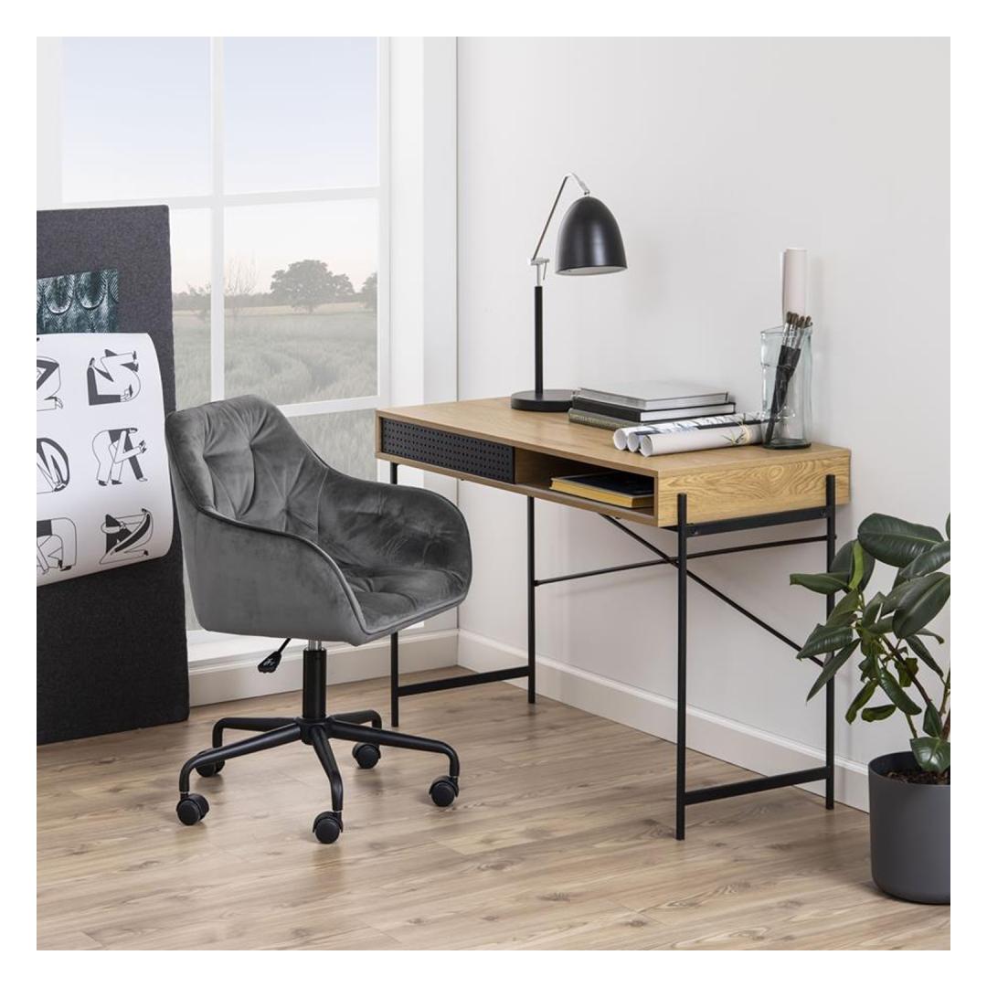 Töötool BROOKE 59x59xH89cm, tumehall samet, 100% polüester, jalg: must metall