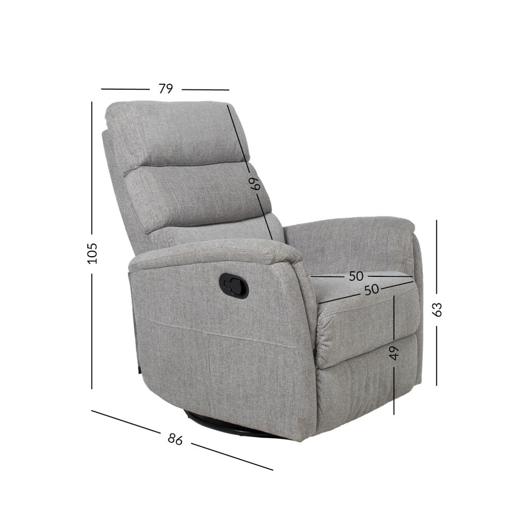 Tugitool BARCLAY manuaalne recliner, pöörlev ja kiikuv, helehall