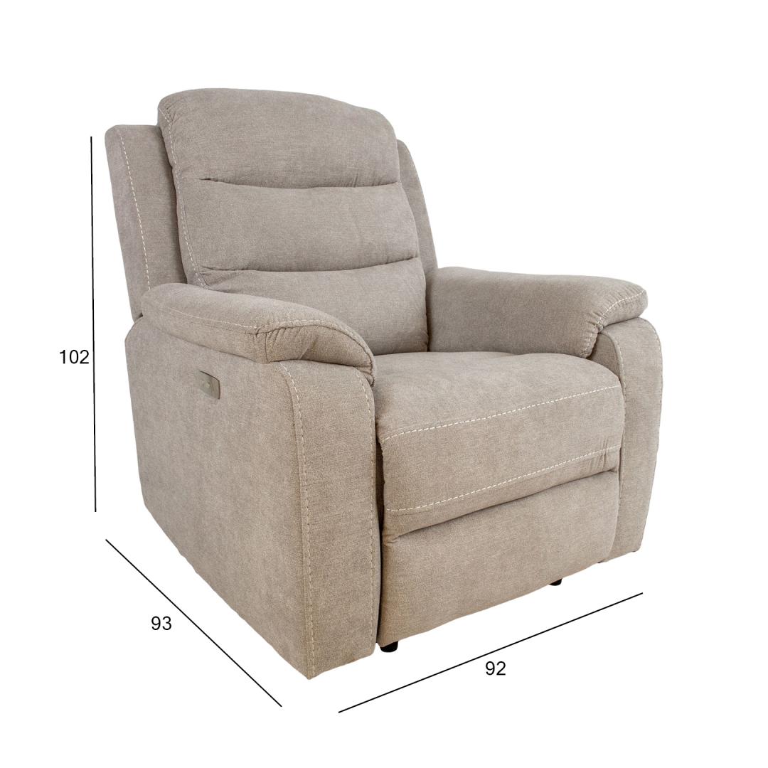 Tugitool MIMI elektriline recliner 92x93xH102cm, helehall. Recliner tüüpi tugitooli selja- ja jalatoe asendit on võimalik muuta elektrilise mehhanismi abil. Jalatuge üles tõstes liigub seljatugi sujuvalt kaasa lamavasse asendisse. Kattematerjal: 100% polüesterkangas, Martindale 30 000. Karkass: puit, vineer ja metall. Polsterdus: polüuretaanvaht. Tugitool MIMI elektriline recliner 92x93xH102cm, helehall. Recliner tüüpi tugitooli selja- ja jalatoe asendit on võimalik muuta elektrilise mehhanismi abil. Jalatuge üles tõstes liigub seljatugi sujuvalt kaasa lamavasse asendisse. Kattematerjal: 100% polüesterkangas, Martindale 30 000. Karkass: puit, vineer ja metall. Polsterdus: polüuretaanvaht.