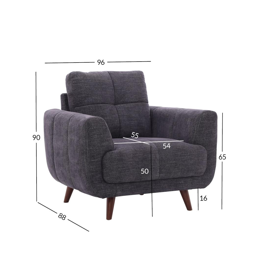 Tugitooli üldmõõdud on 96x88xH90cm. Istme laius 54cm, istme sügavus 55cm, istme kõrgus 50cm. Käetoe kõrgus maast 65cm.