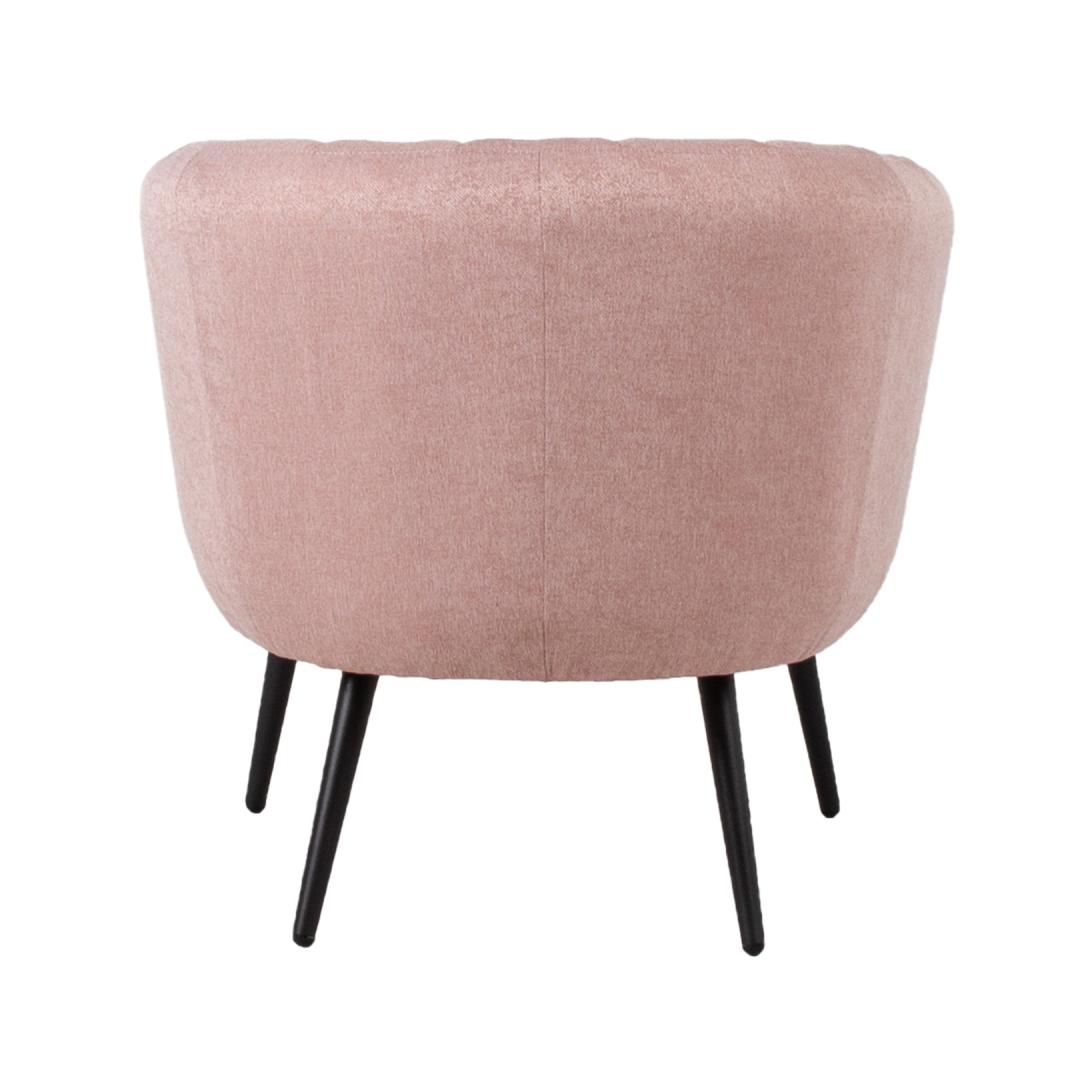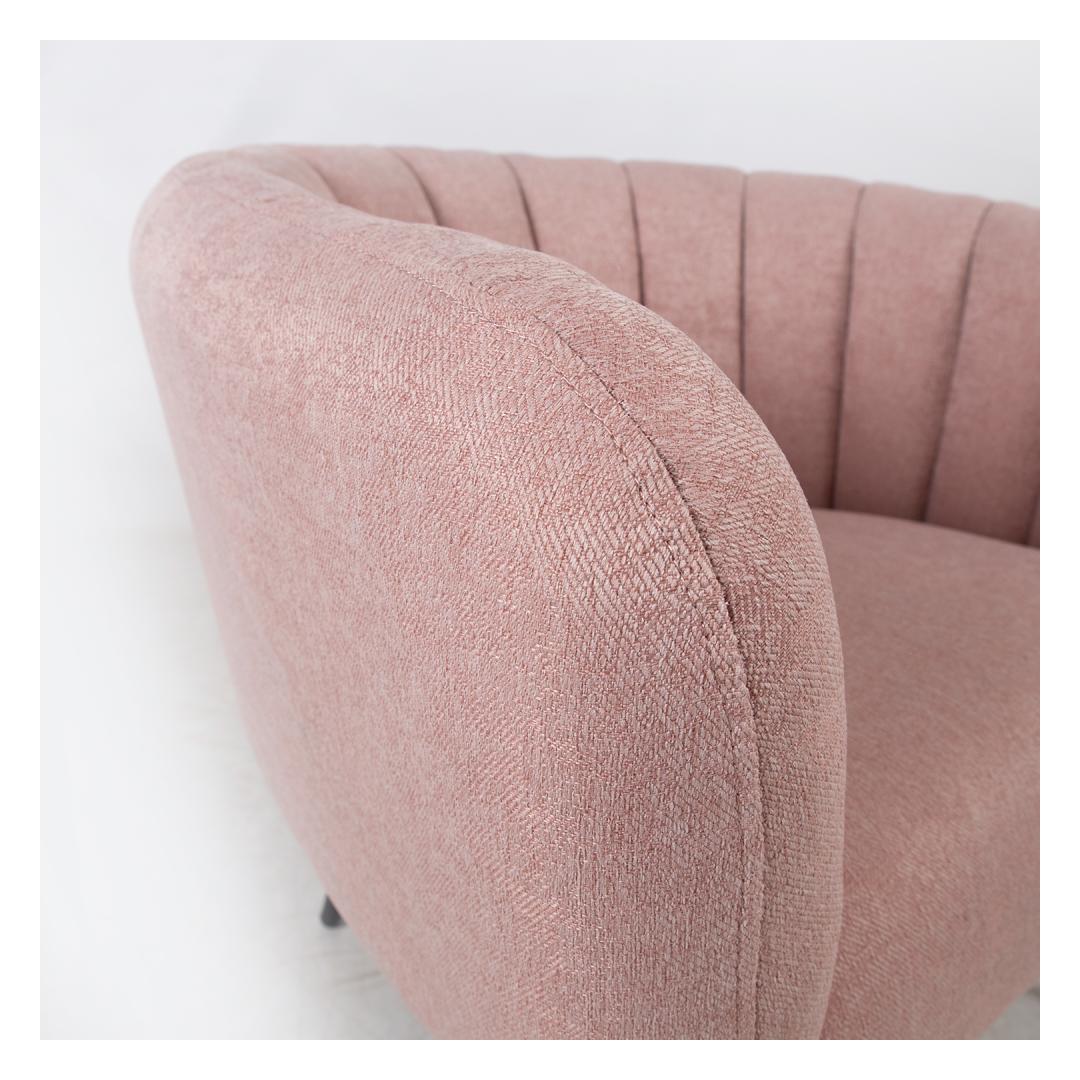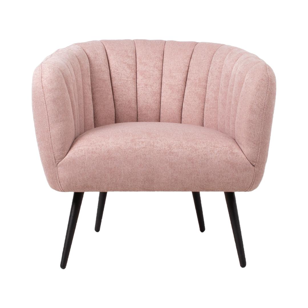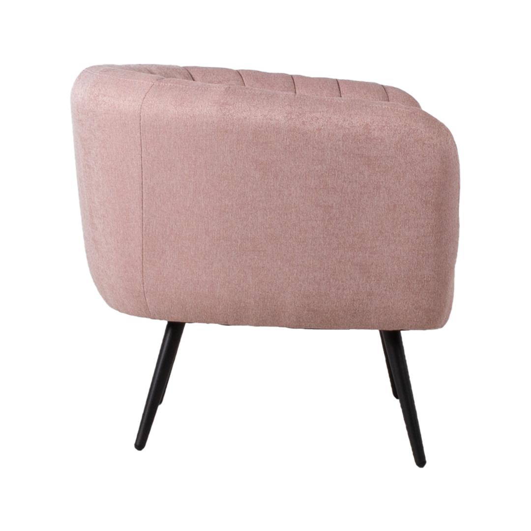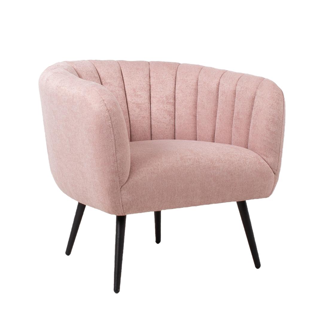 Tugitool TUCKER roosa. Tugitool on kaetud roosa kangaga. Kattematerjal on 100% polüesterkangas. Tugitoolil on mustad metallist jalad. Toote mõõdud on 78x71xH69cm.
