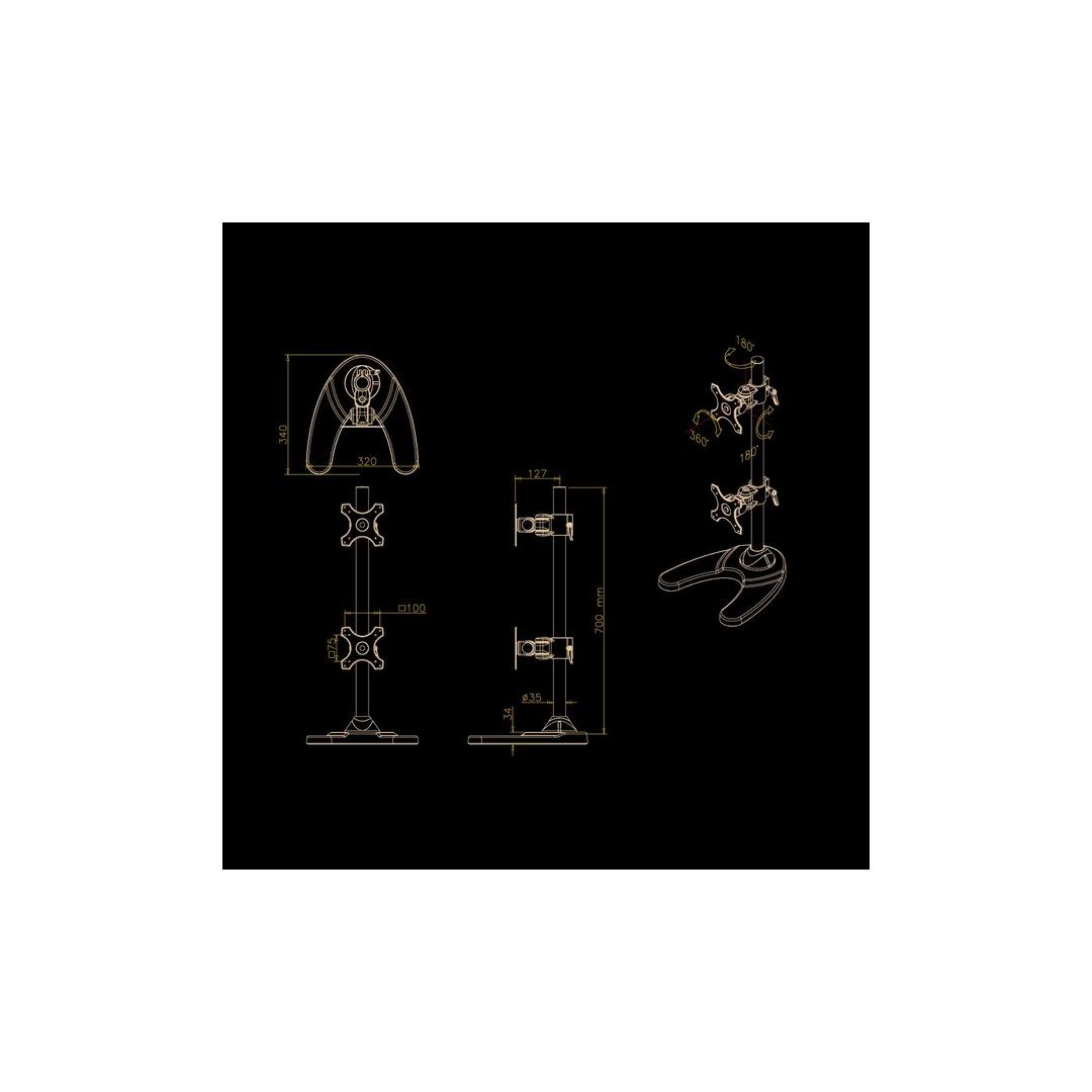 NewStars’ unique tilt (180°), rotate (360°) and swivel (180°) technology allows the mount to change to any viewing angle to fully benefit from the capabilities of the flat screen. The mount is manually height adjustable from 0 to 70 centimetres. Depth 13 centimetres.