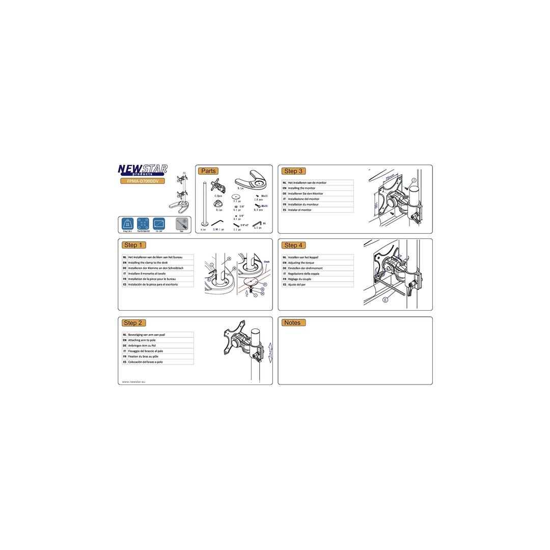 NewStar FPMA-D700DDV has two pivot points and is suitable for screens up to 24" (60 cm). The weight capacity of this product is 6 kg each screen. The desk mount is suitable for screens that meet VESA hole pattern 75x75 or 100x100mm. Different hole patterns can be covered using NewStar VESA adapter plates.