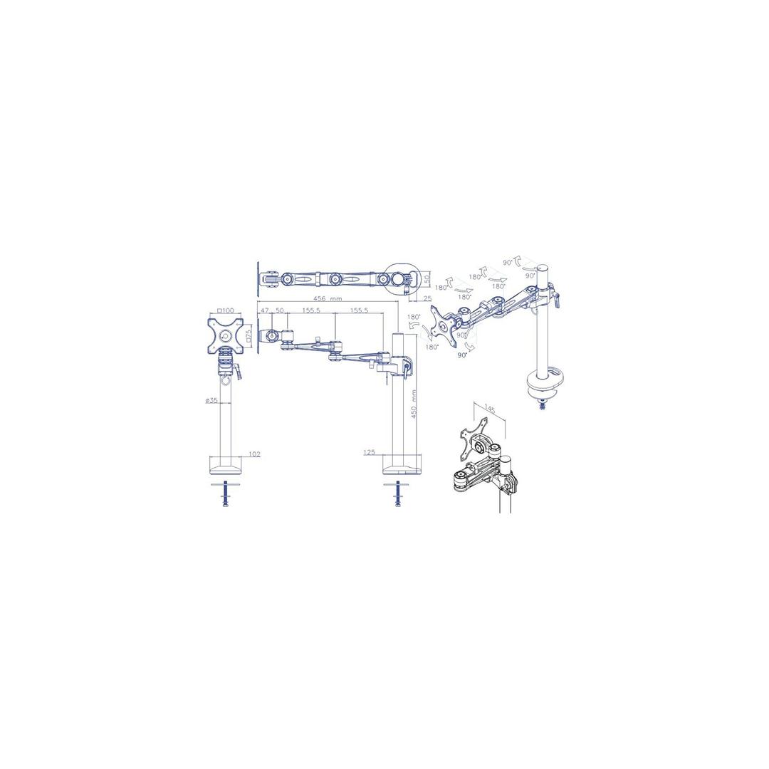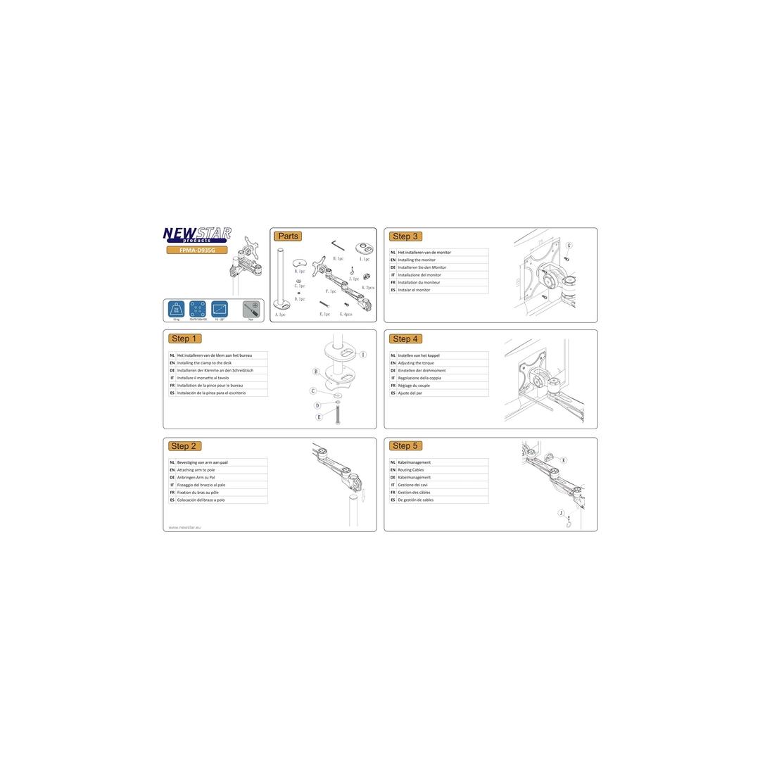 NewStar FPMA-D935G has three pivot points and is suitable for screens up to 26" (65 cm). The weight capacity of this product is 12 kg. The desk mount is suitable for screens that meet VESA hole pattern 75x75 or 100x100mm. Different hole patterns can be covered using NewStar VESA adapter plates.