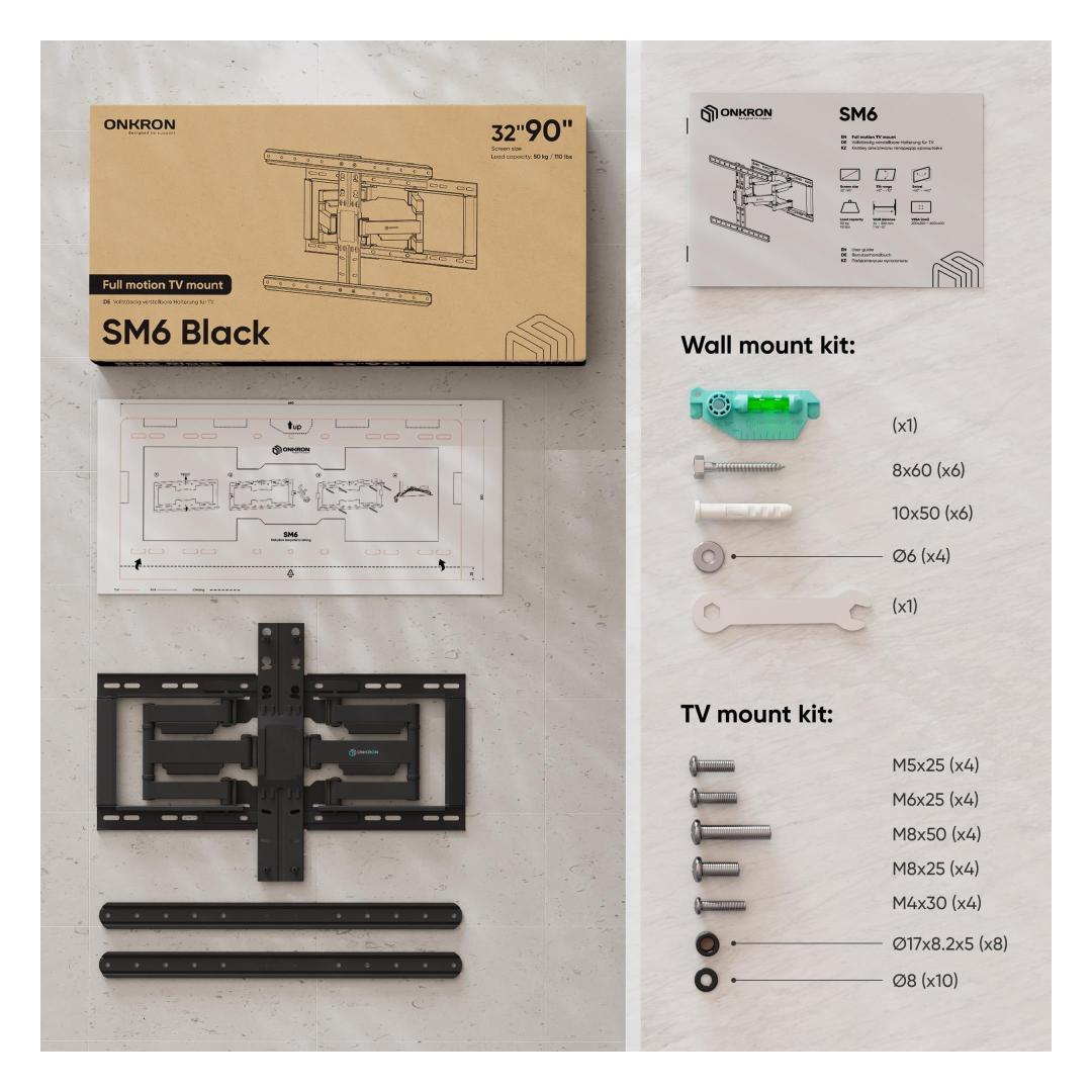 TV SET ACC WALL MOUNT /32-90"/BLACK SM6-B ONKRON