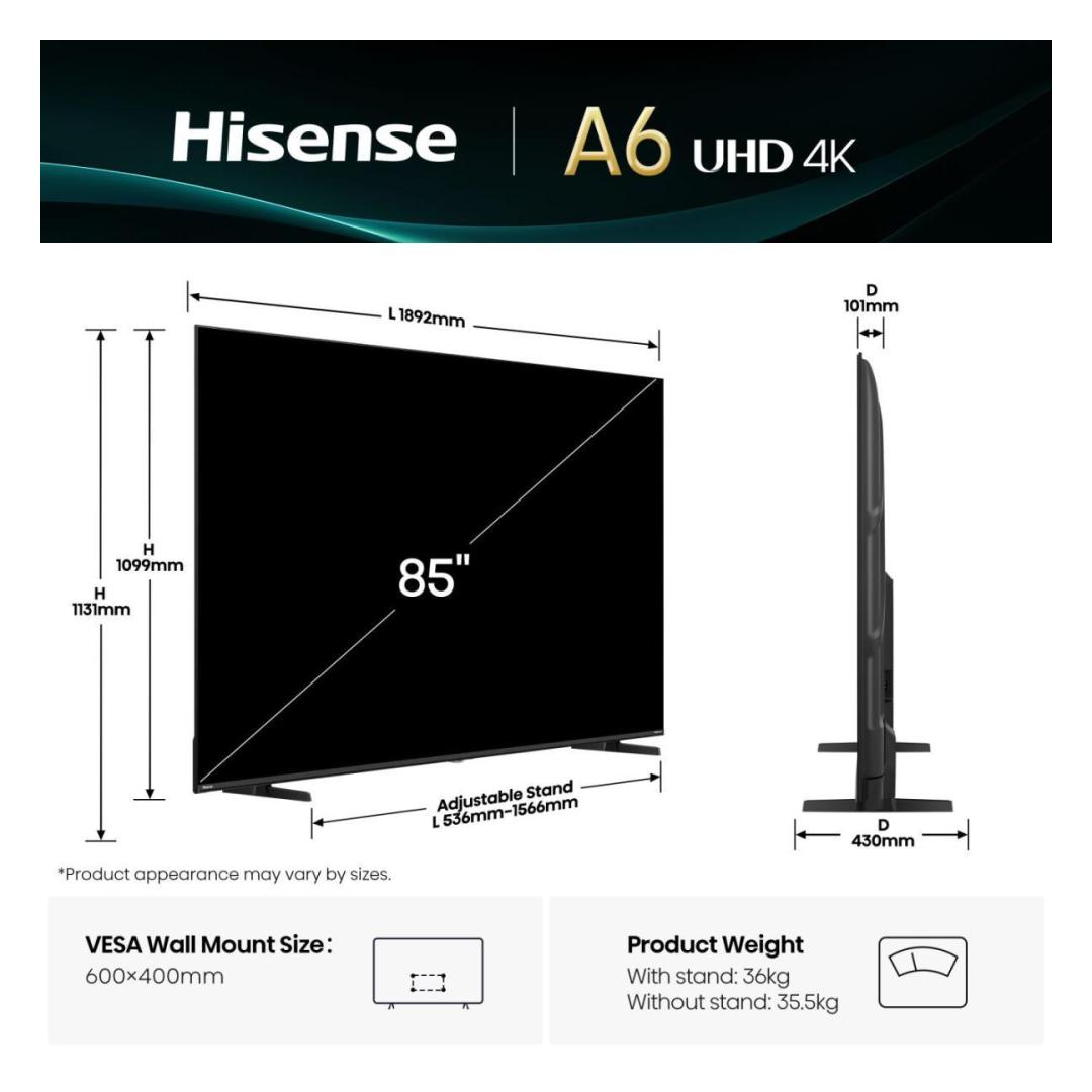 TV Set HISENSE 85 " 4K Ultra HD 3840 x 2160 pixels Flat 16:9 LED 85A6Q