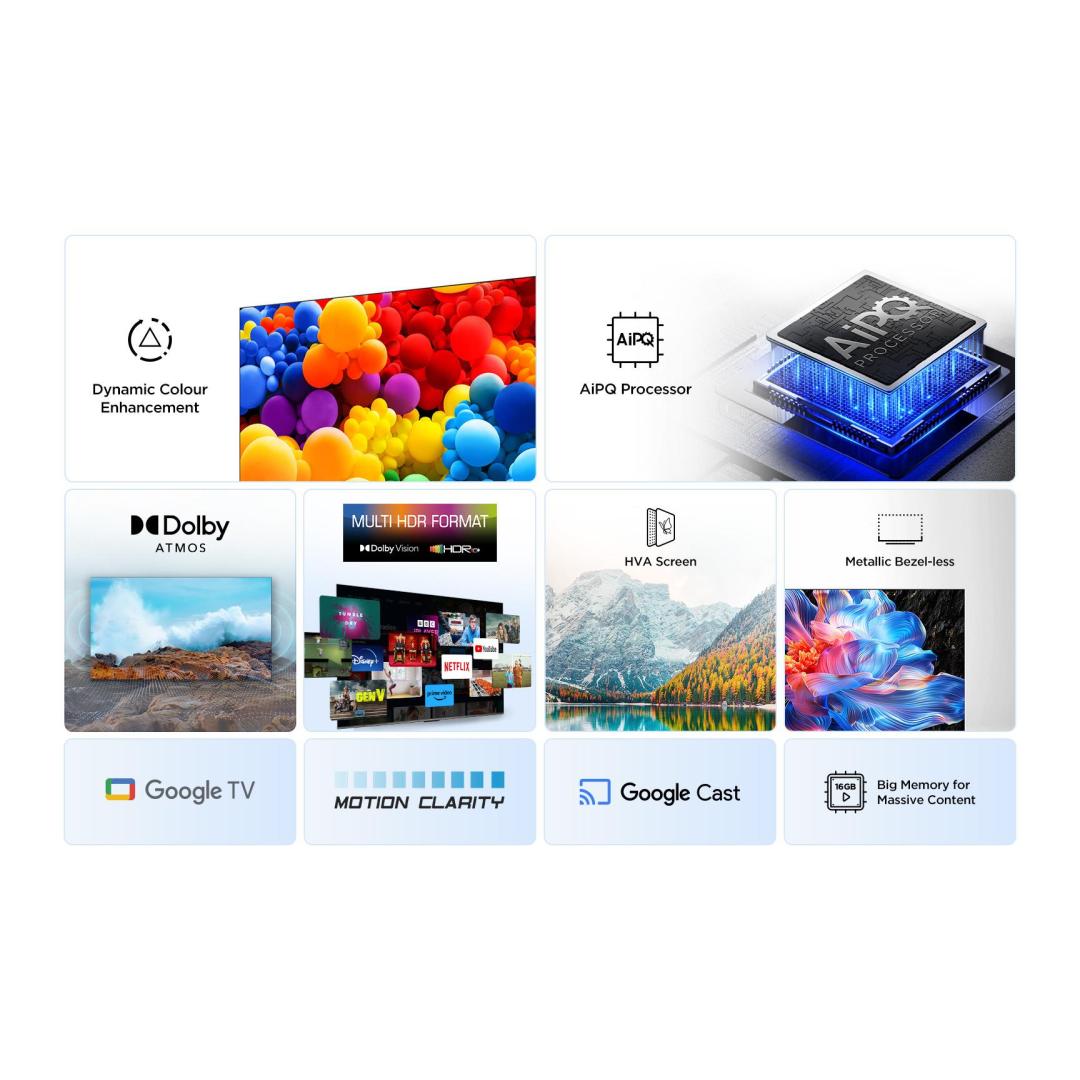 - AiPQ Processor: AiPQ enabled TCL algorithm processes contents with stable and high 4K quality, clear and fluent motion, high contrast and the finest details