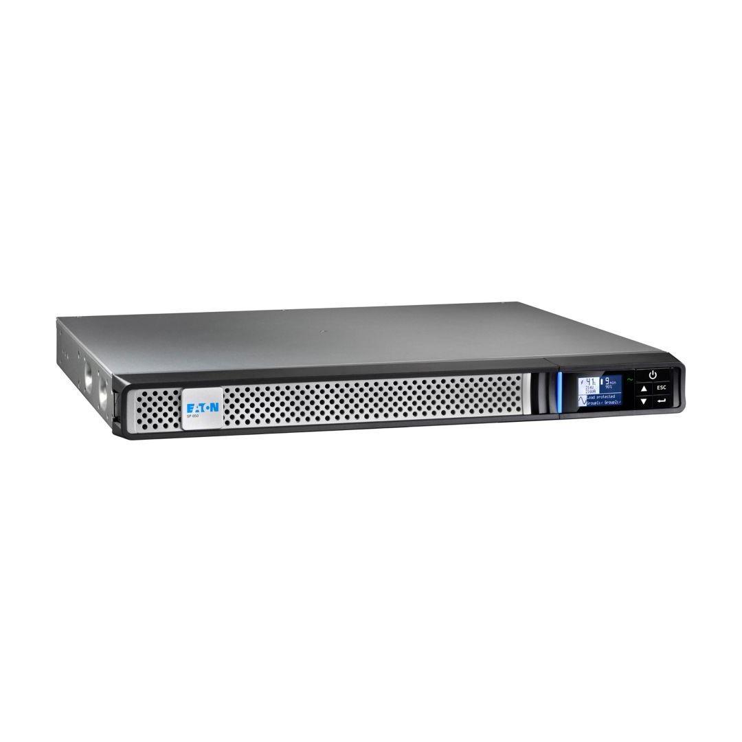 Eaton 5P650IRNG2. UPS topology: Line-Interactive, Output power capacity: 0.65 kVA, Output power: 520 W. AC outlet types: C13 coupler, Power plug: C14 coupler, AC outlets quantity: 4 AC outlet(s). Battery technology: Sealed Lead Acid (VRLA), Battery capacity: 9 Ah, Battery voltage: 6 V. Form factor: Rackmount, Product colour: Black, Silver, Display type: LCD. Compliance certificates: Electromagnetic Compatibility (EMC), Low Voltage Directive (LVD), RoHS, Certification: IEC/EN 62040-1 IEC/EN 62040-2 IEC/EN 62040-3 UL 1778 CSA-C22.2 CE UKCA Cm Ukr KCC cTUVus BIS