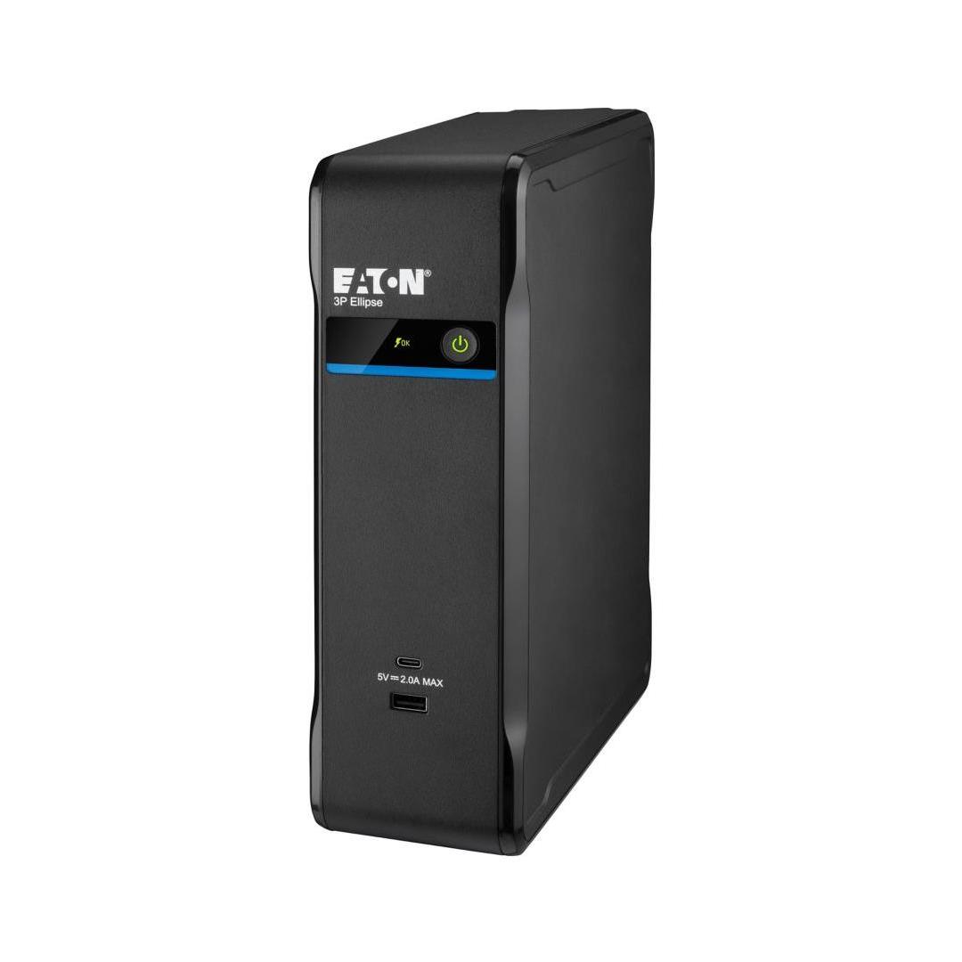 Eaton 3P Ellipse. UPS topology: Standby (Offline), Output power capacity: 0.9 kVA, Output power: 540 W. AC outlet types: C14 coupler, AC outlets quantity: 4 AC outlet(s), USB port type: USB Type A/USB Type-C. Battery capacity: 9 Ah, Battery voltage: 12 V. Form factor: Tower, Product colour: Black, Display type: LED. Compliance certificates: CB, CE, RoHS, WEEE, Certification: IEC/EN 62040-1 IEC/EN 62040-2 IEC/EN 62040-3 CE UKCA Ukr Cm
