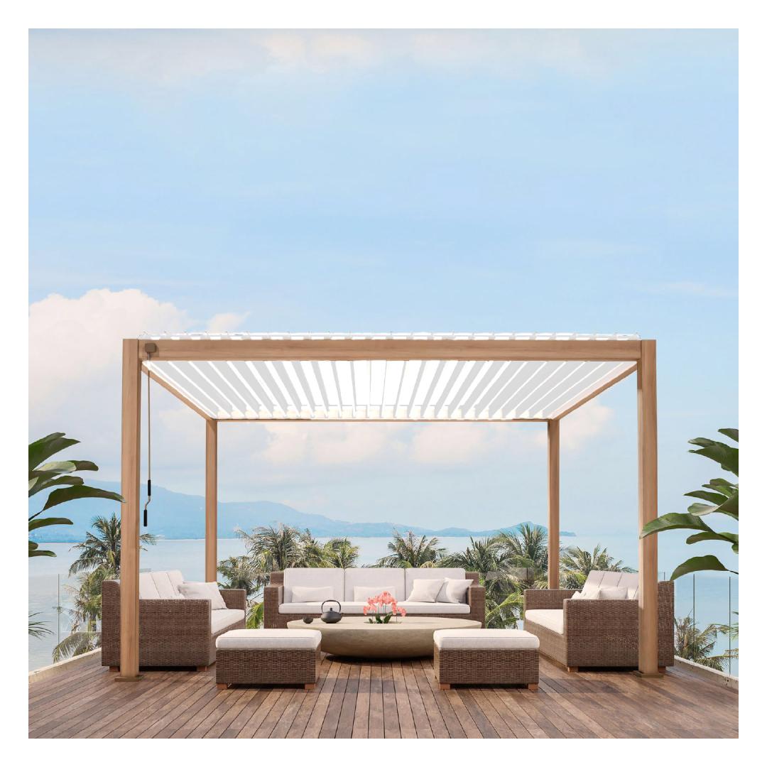 Kaasaegne, elegantne ja funktsionaalne varikatus/aiapaviljon sobib kõikjale - aeda, terrassile, basseini äärde või auto varjualuseks. Varikatus on kasutatav aastaringselt. Uuenduslik lamellkatus on vändaga avatav ja suletav ning pakub kaitset ja varju nii kerge vihma, kui kõrvetava päikese eest. Suletud lamellidega katus on veekindel. Tänu sisse ehitatud vihmaveesüsteemile juhitakse vesi ohutult katuselt ära.