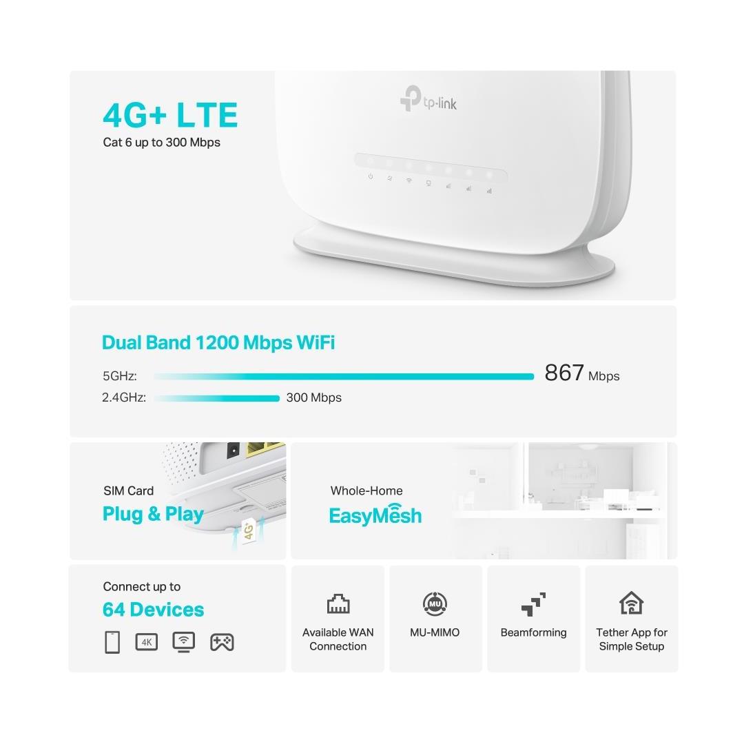 4G+ Cat6 300 Mbps LTE AC1200 Wireless Dual Band Gigabit Router Archer MR505 1.5m Power Adapter RJ45 Ethernet Cable Quick Installation Guide
